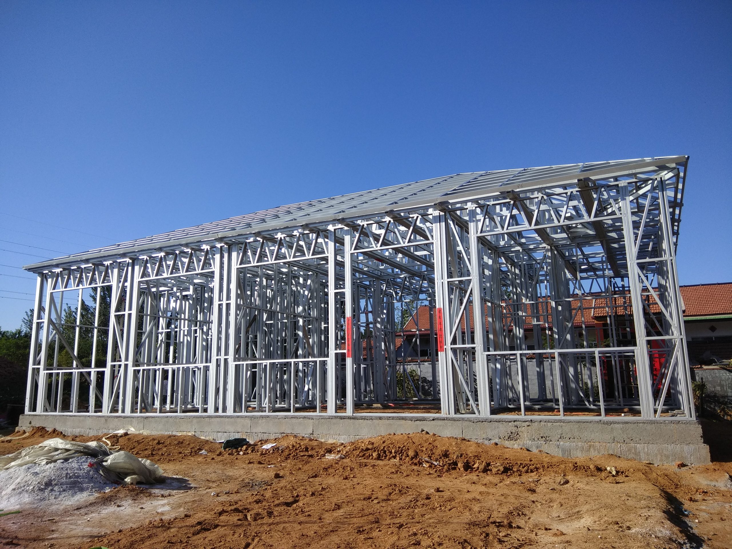 Легкий стальной дом Основной материал использует горячую алюминиево – цинковую стальную ленту толщиной 0,8 мм, 1,0 мм, 1,2 мм, легкий стальной киль, синтезированный методом холодной прокатки, после расчета плюс поддержка и сочетание вспомогательных деталей, чтобы играть разумную пропускную способность, чтобы заменить традиционные дома.